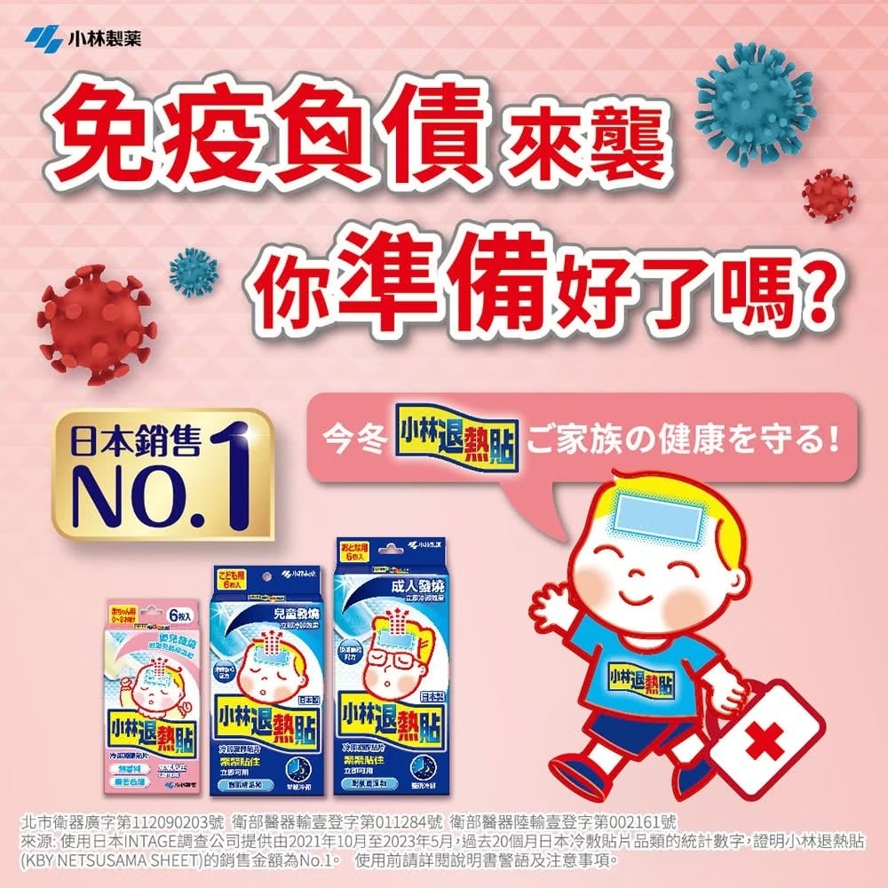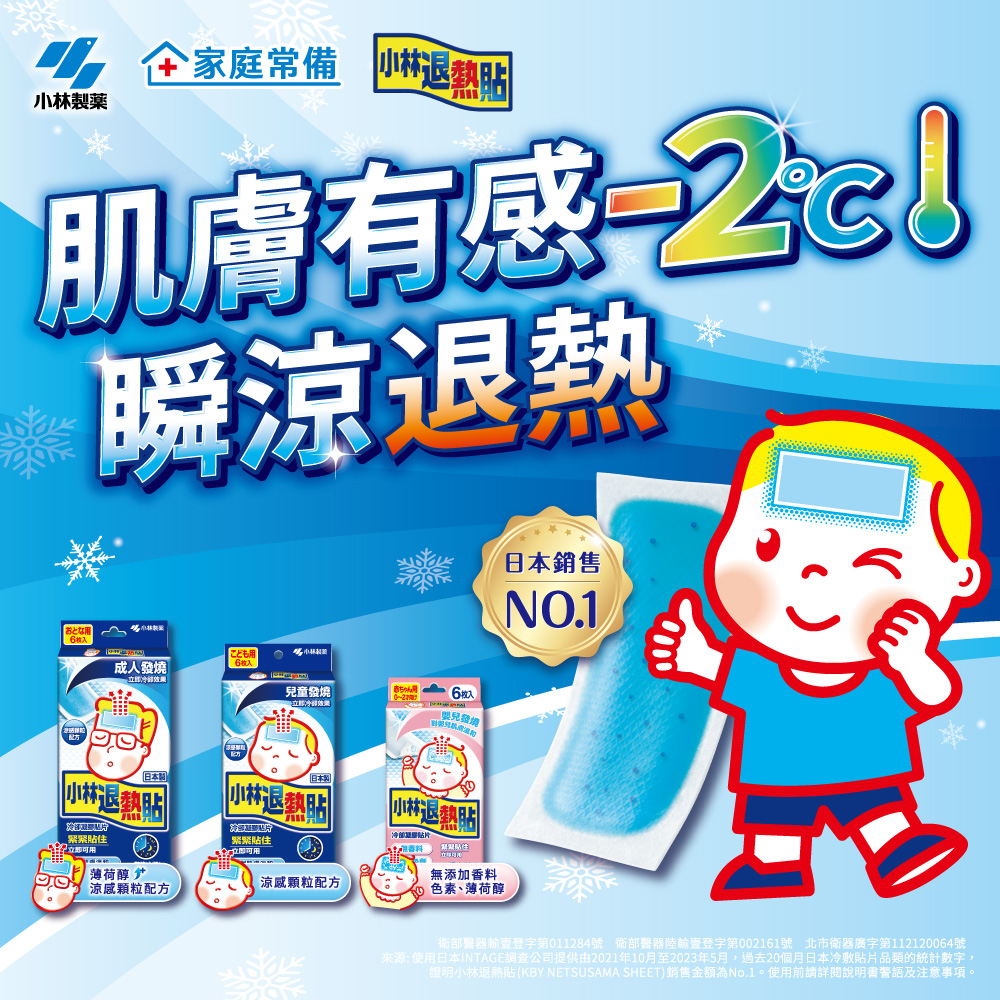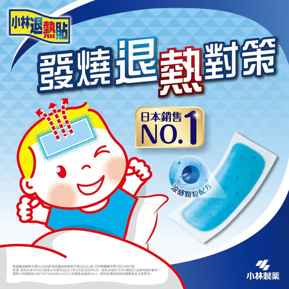 小林退熱貼添加獨特吸熱分子,貼在額頭上可達到退熱效果。特殊設計能與肌膚緊密貼合,不易脫落。不需冷藏,可常溫放置,方便取用。