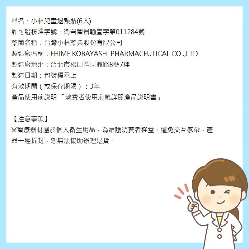 [正光藥局]小林-兒童退熱貼 6片/盒