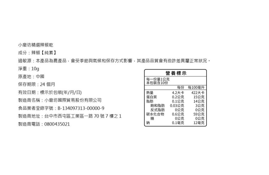 ◎品牌:小磨坊 ◎規格: 10g克 x 1 x 1Bag包