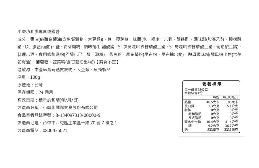 小磨坊和風壽喜燒鍋醬100g