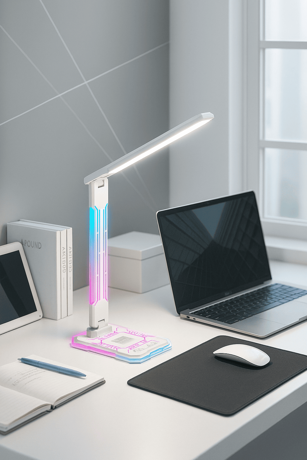 • RGB 燈效環繞,增添科技與遊戲氛圍• 可調節亮度,滿足閱讀與氛圍需求• 可折疊收納設計,方便攜帶與收納• 觸控按鍵操作,簡單直覺• 適用於書桌、電競桌與臥室照明