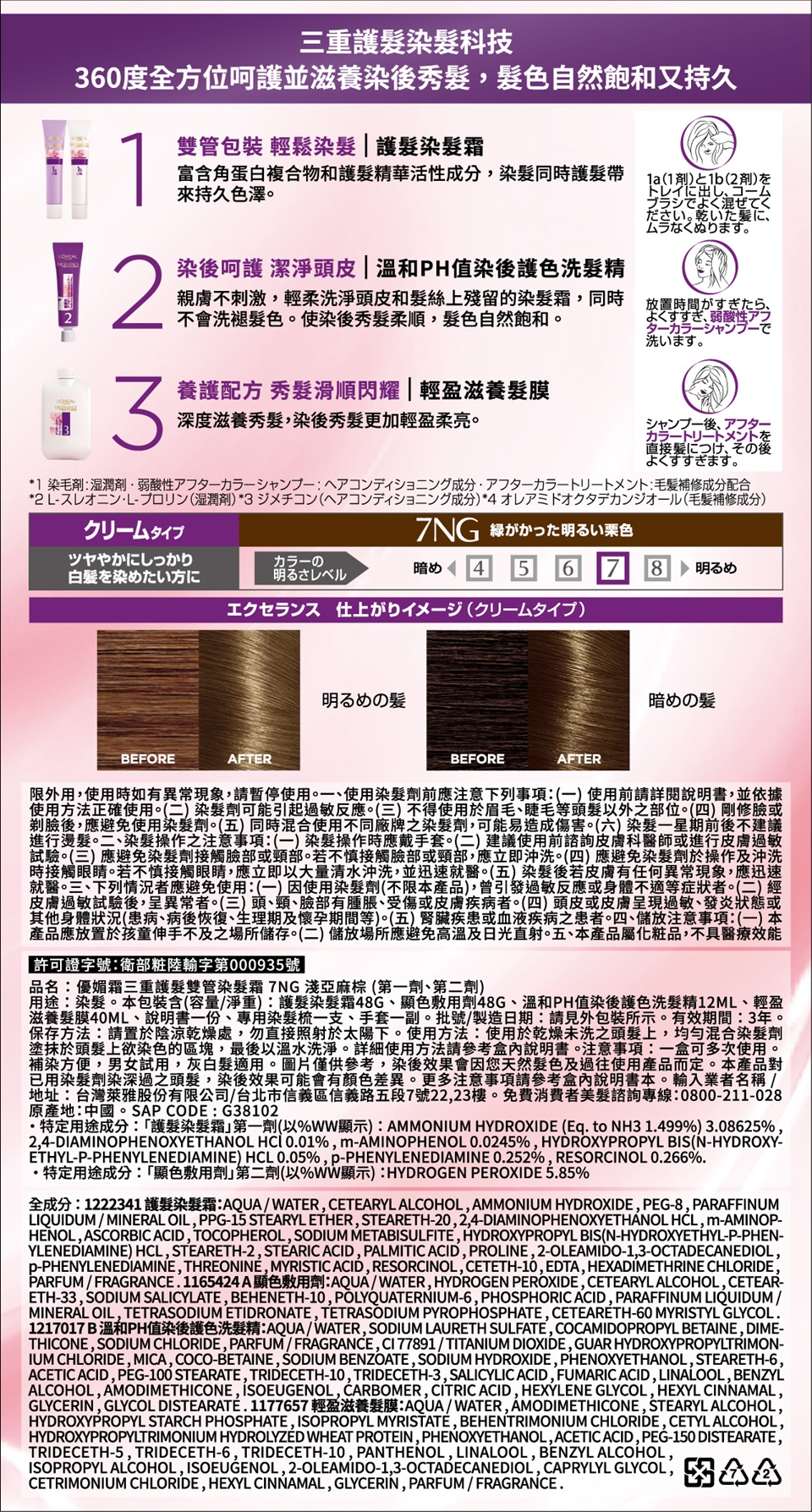 巴黎萊雅優媚霜三重護髮雙管染髮霜7NG