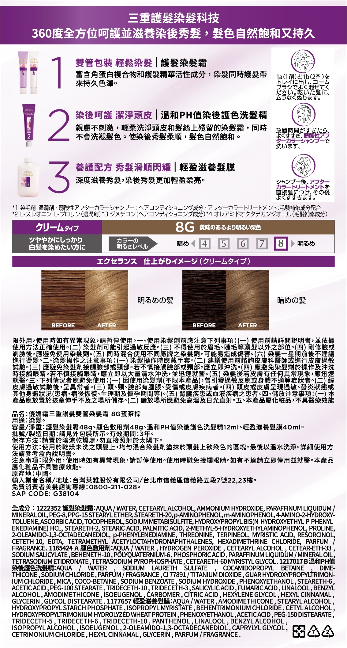 巴黎萊雅優媚霜三重護髮雙管染髮霜 8G