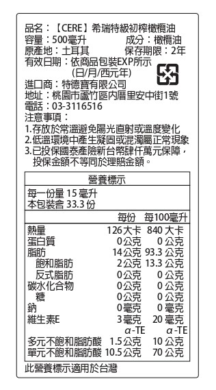 希瑞特級初榨橄欖油500ML