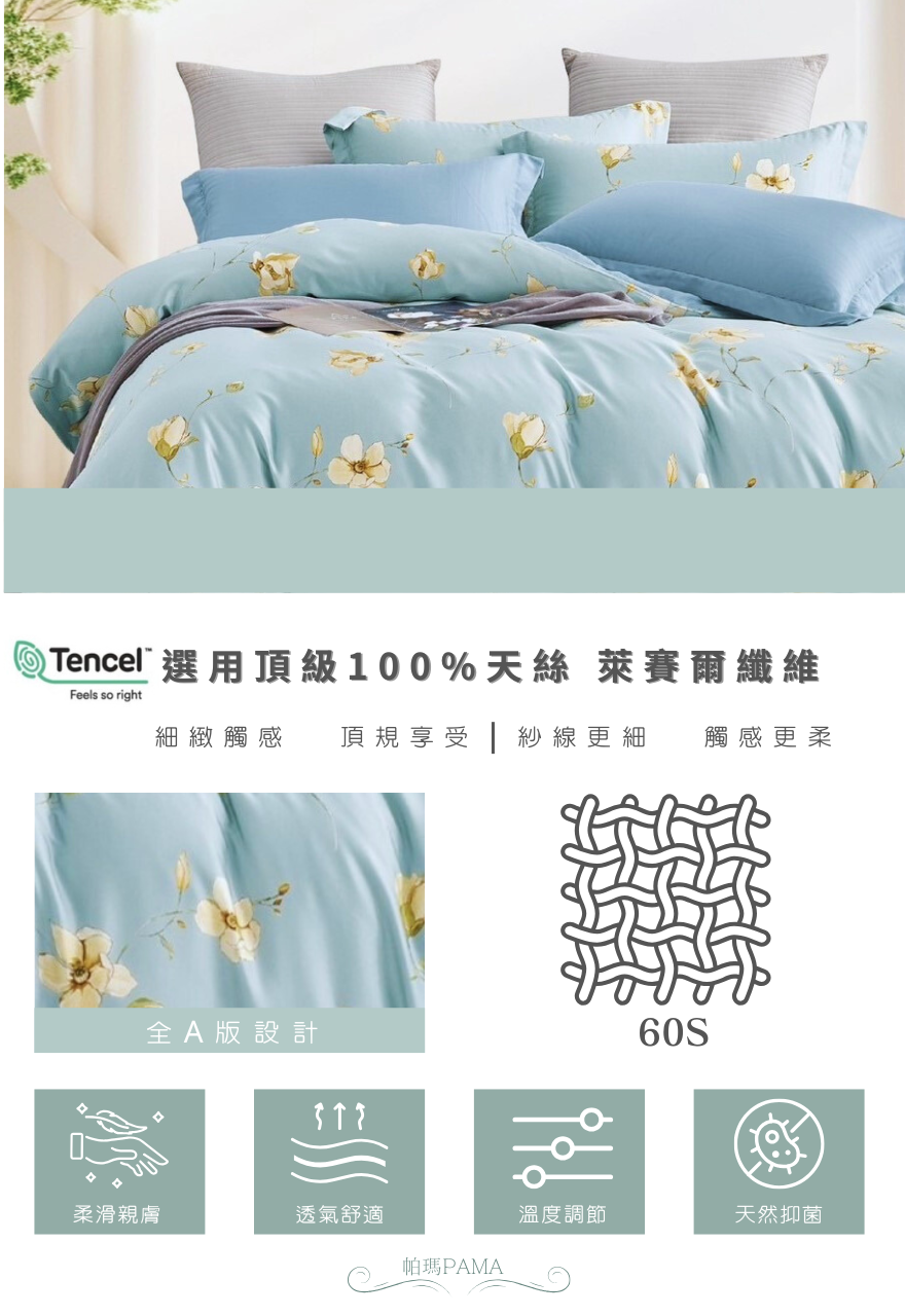 【帕瑪PAMA】100% 60S 天絲床包組/單人3.5X6.2/此岸花開