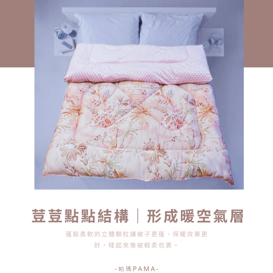 蓬鬆柔軟的立體顆粒讓被子更蓬、保暖效果更好,睡起來像被輕柔包裹。