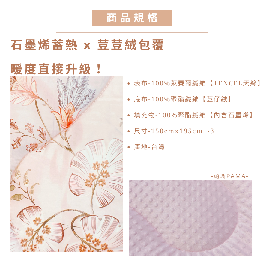 石墨烯與表布都有良好透氣性,暖而不悶,讓你整晚睡到自然醒。