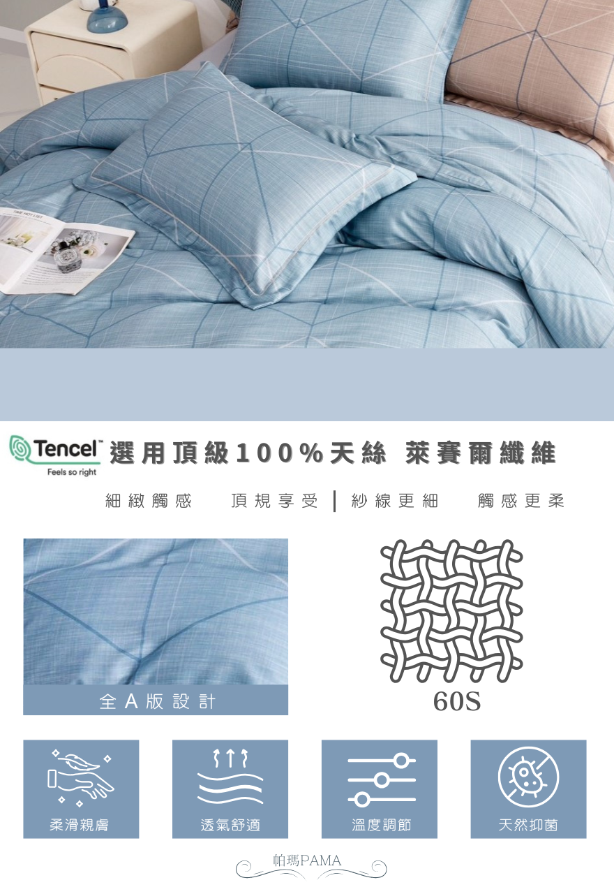 【帕瑪PAMA】60S 100%天絲兩用被床包組/雙人加大/文森-藍