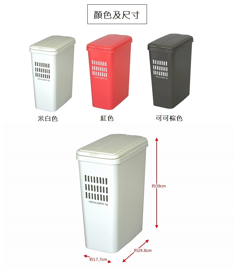 商品規格本體尺寸:約17.7×29.8×39cm素材・材質:PP原産國:日本容量:14L
