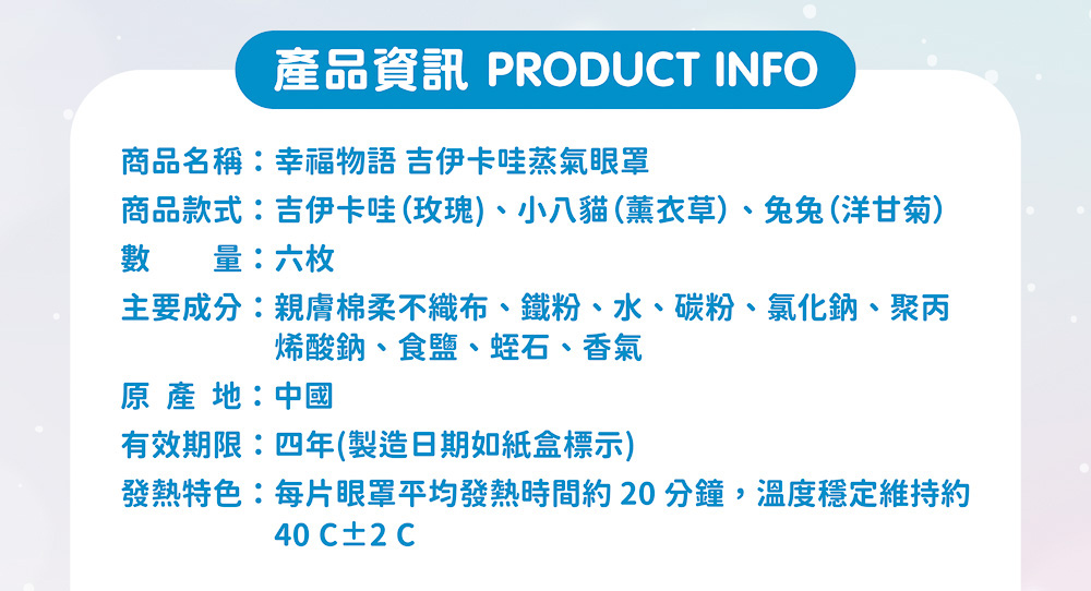 .因燈光色差及蒸氣眼罩機台不同,蒸氣眼罩可能有些微差異,以實際出貨為主