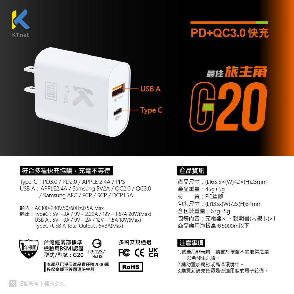 ■高功率快速充電,高溫和高電壓下長時間工作產品尺寸 : (L)65.5×(W)42×(H)23mm產品重量 : 45g±5g含包裝重量 : 67g±5g產 地 : 中國材 質 : PC塑膠包裝尺寸 : (L)135x(W)72x(H)34mm包裝內容 : 充電器×1、說明書印於內襯卡上×1