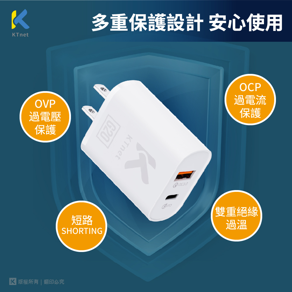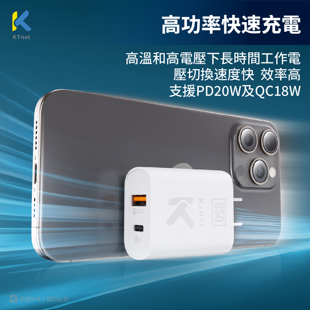 ■雙接口 Type-C+USB-A 支援PD20W及QC18W
