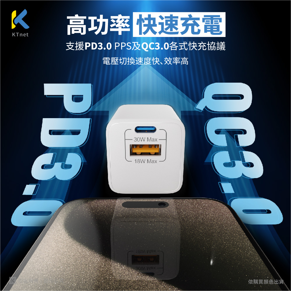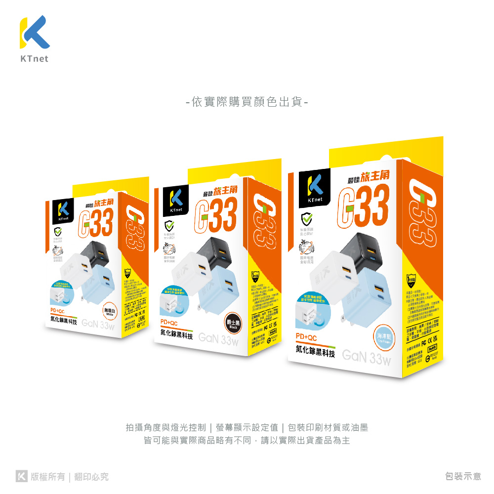 【KTNET】G33 氮化鎵33W全電壓充電器1A1C 黑