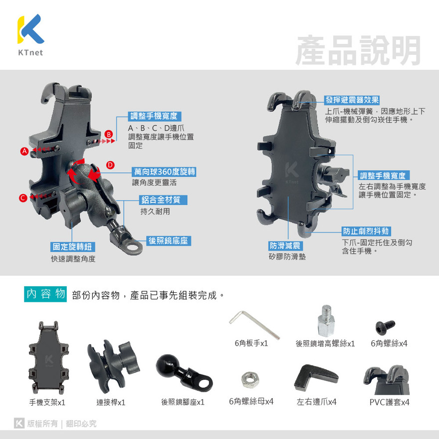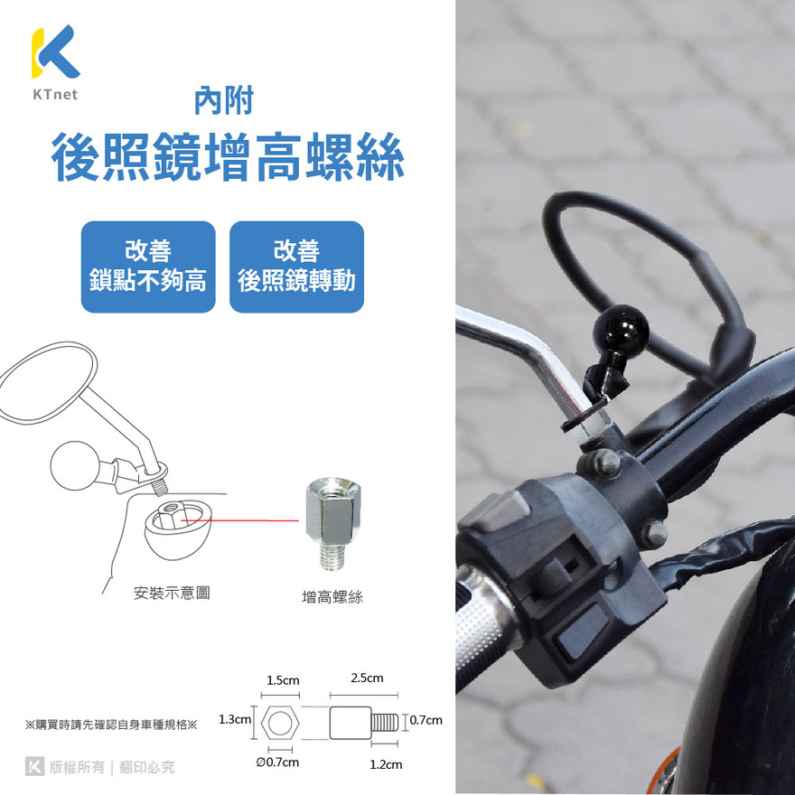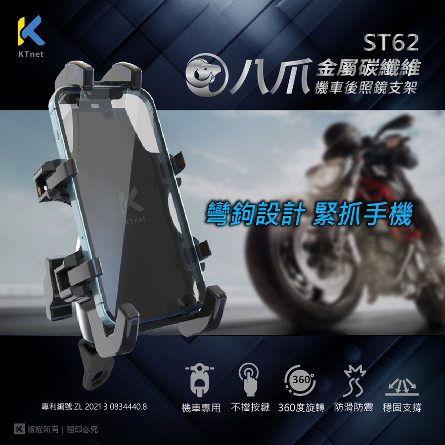 【KTNET】ST62 八爪鋁合金 機車後照鏡支架