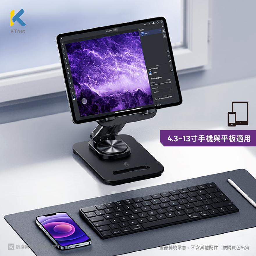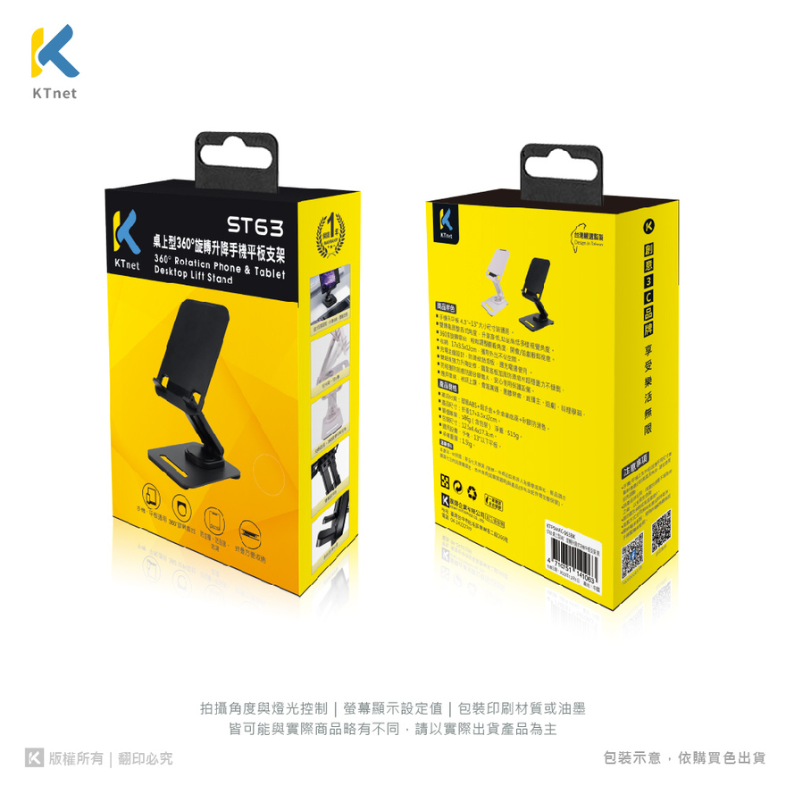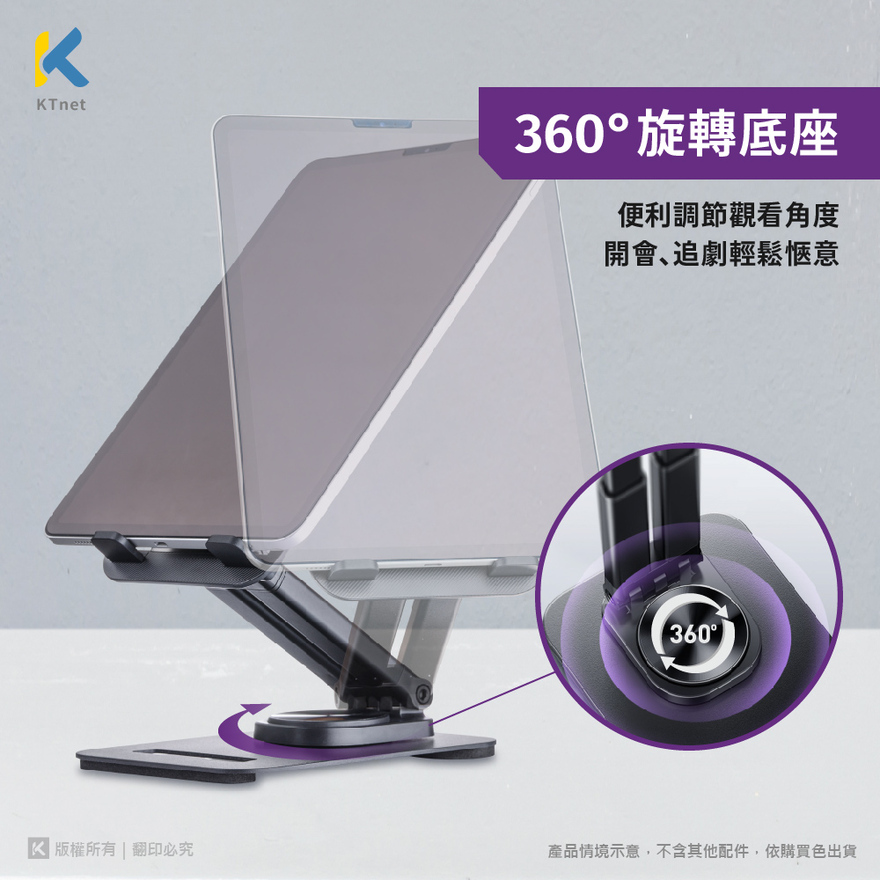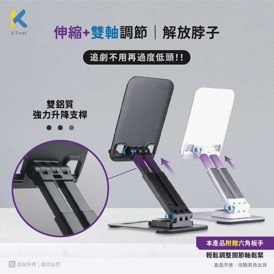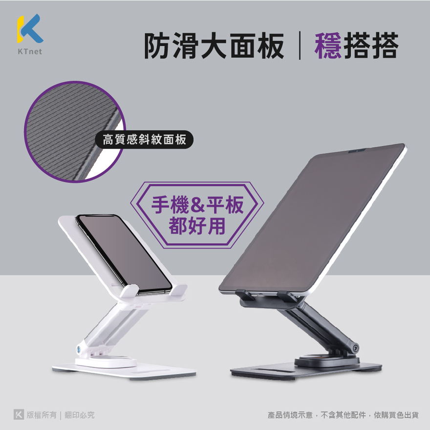 【KTNET】ST63 桌上型360°旋轉升降式手機平板支架 白