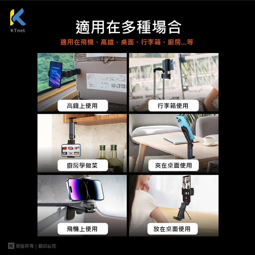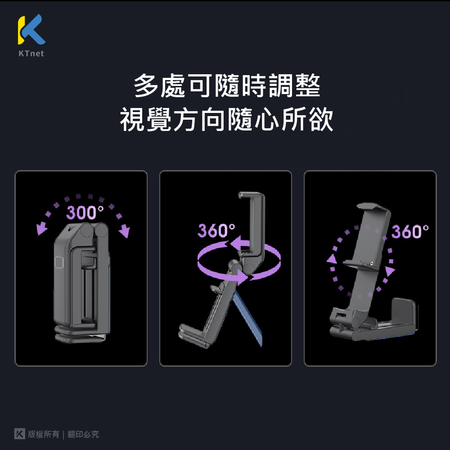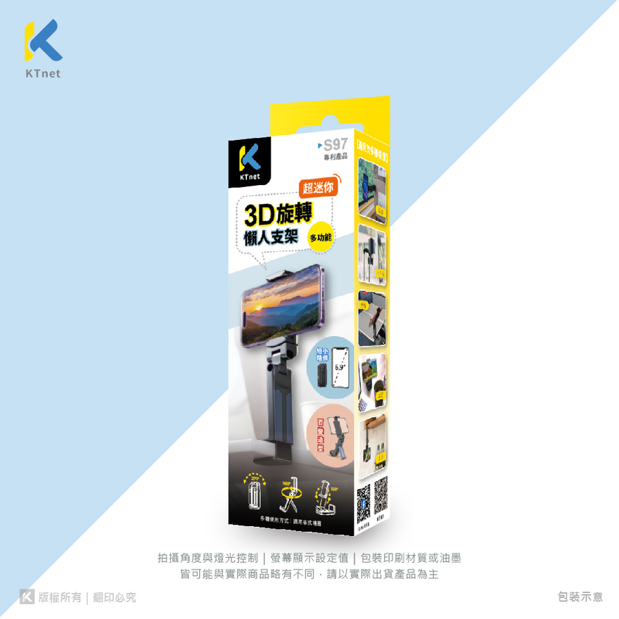 【KTNET】S97 多功能3D旋轉 手機專利懶人支架 黑