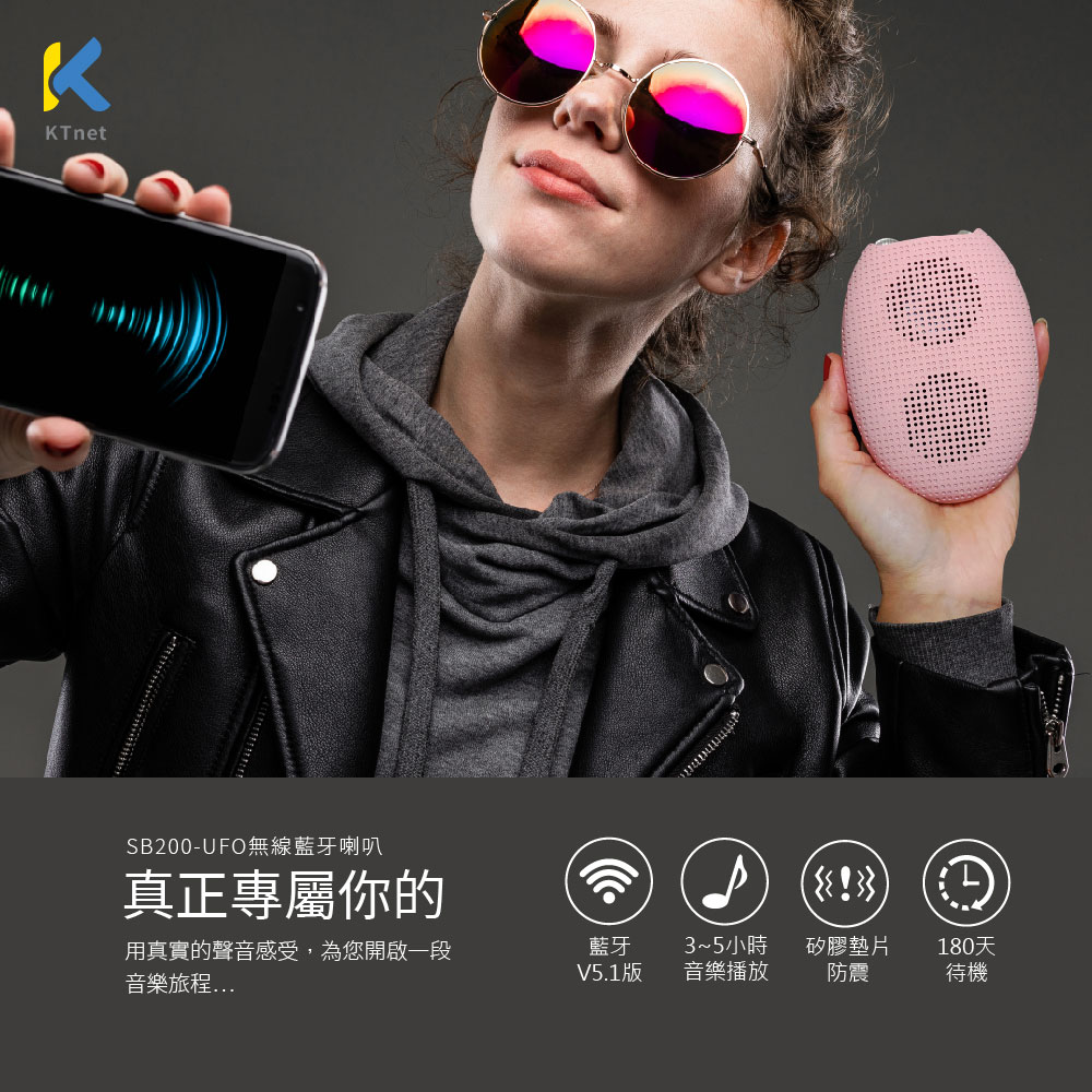 【KTNET】SB200 UFO無線藍芽TWS喇叭 粉紅