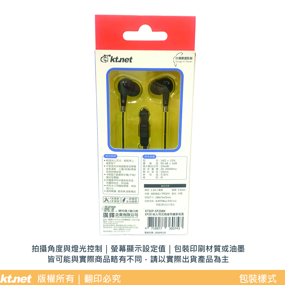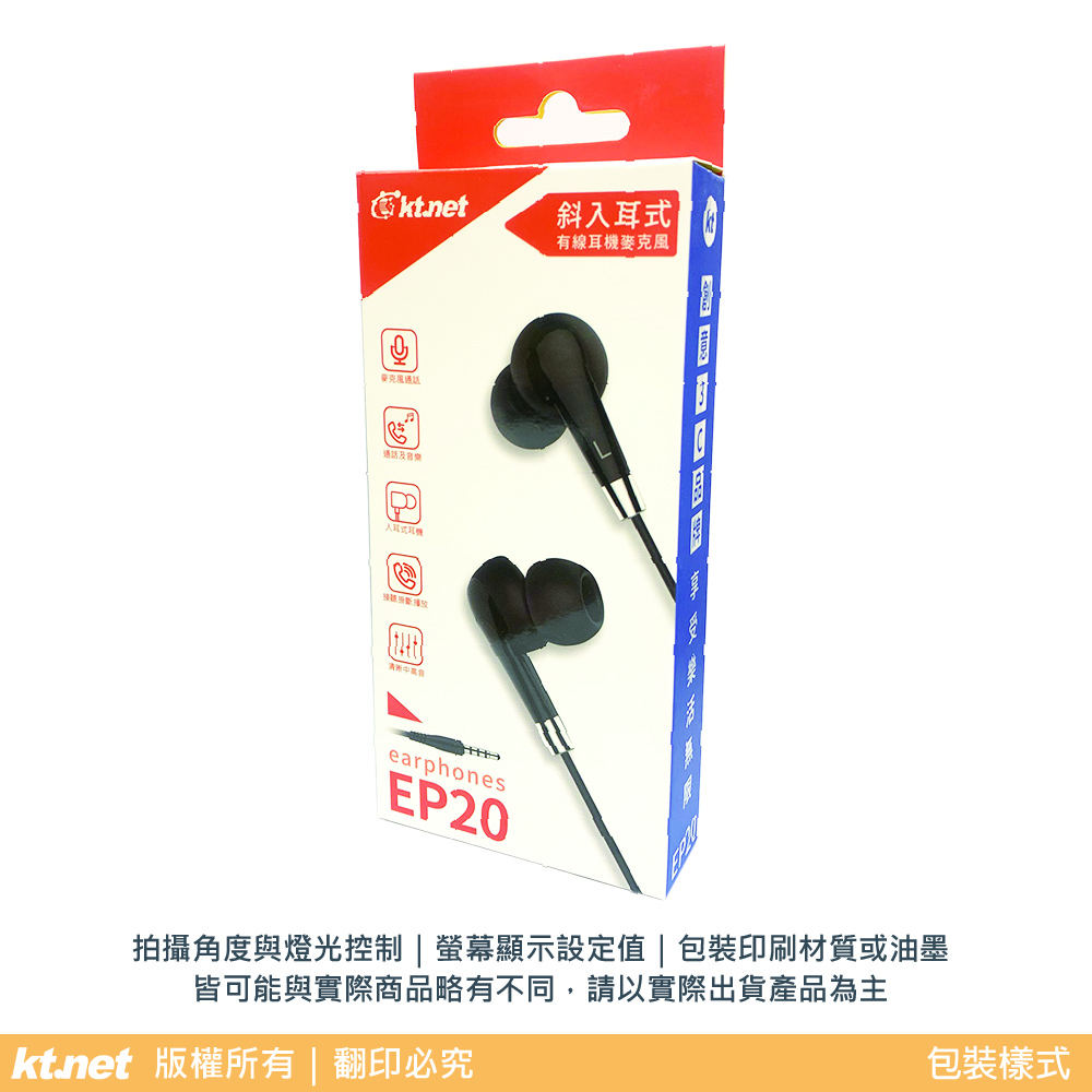 【KTNET】EP20 斜入耳式有線耳機麥克風4極插