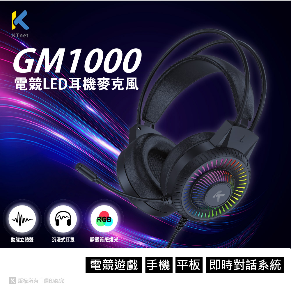 【KTNET】GM1000全罩式電競LED耳機麥克風 4極插+3.5x2