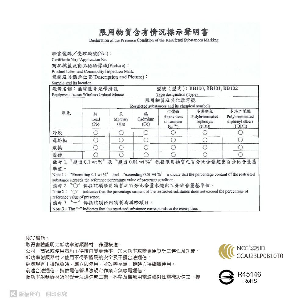 產品尺寸 : 6.4x3.4x9.9cm產品重量 : 100g±5g產地 : 中國材質 : ABS塑膠包裝尺寸 : 12.7x8x19.8±5cm包裝內容 : 光學滑鼠x1NCC : CCAJ23LP0B10T0BSMI : R45146 RoHS