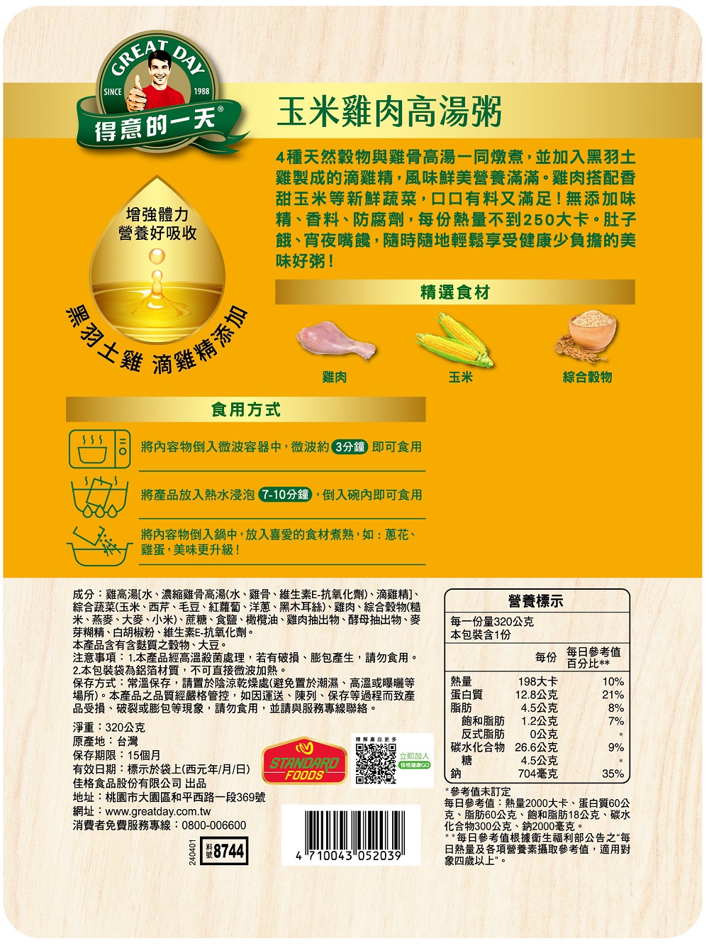 得意的一天滴雞精高湯粥玉米雞肉320g