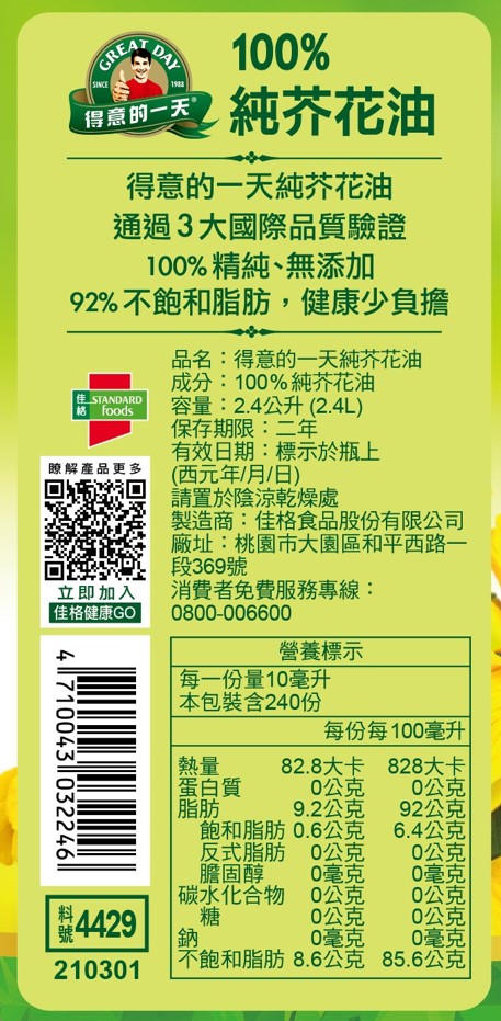 ◎品牌:得意的一天 ◎規格: 2.4L公升 x 1 x 1Bottle瓶