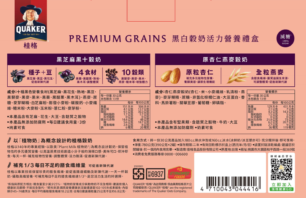 【限量】桂格黑白穀奶 活力營養禮盒 -原味(無提袋)