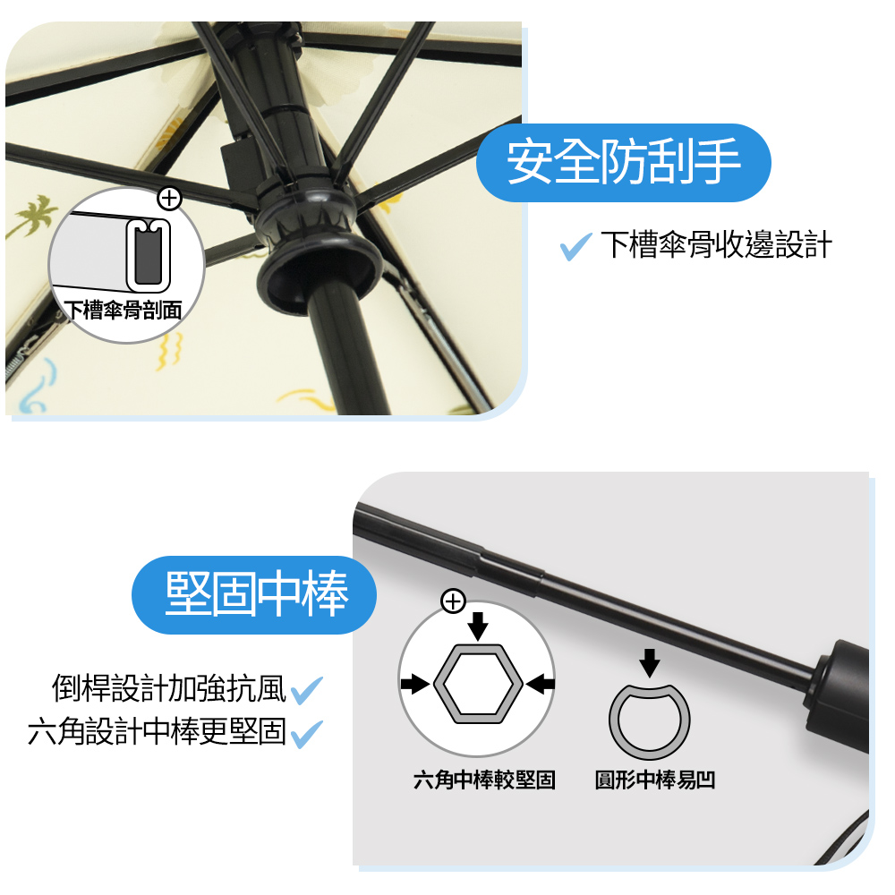 一鍵開收省時省力,遮雨防曬一次到位✔️調整彈簧力度,輕鬆自動開收不爆衝✔️透明抗uv塗層,紫外線遮蔽率達99%✔️六角管中棒不易變形,抗風力更佳