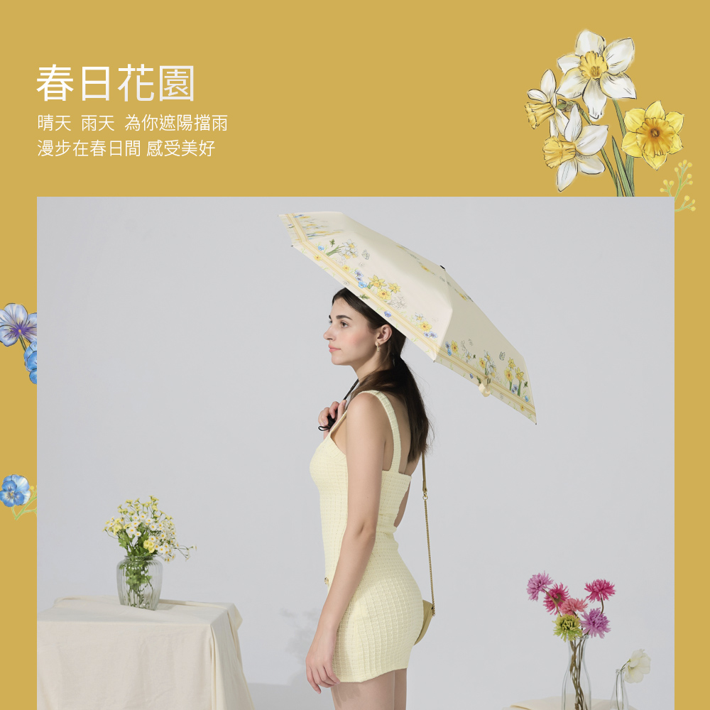 【rento】 防曬黑膠安全自動傘-繽紛花舞