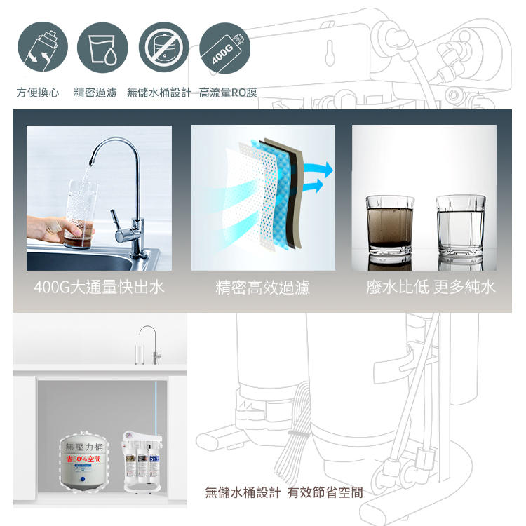 •無需儲水桶,直接過濾用水安心•快拆式前置濾心,維護省時、省力•嚴選高容量RO膜,強化濾淨效能品牌:怡康