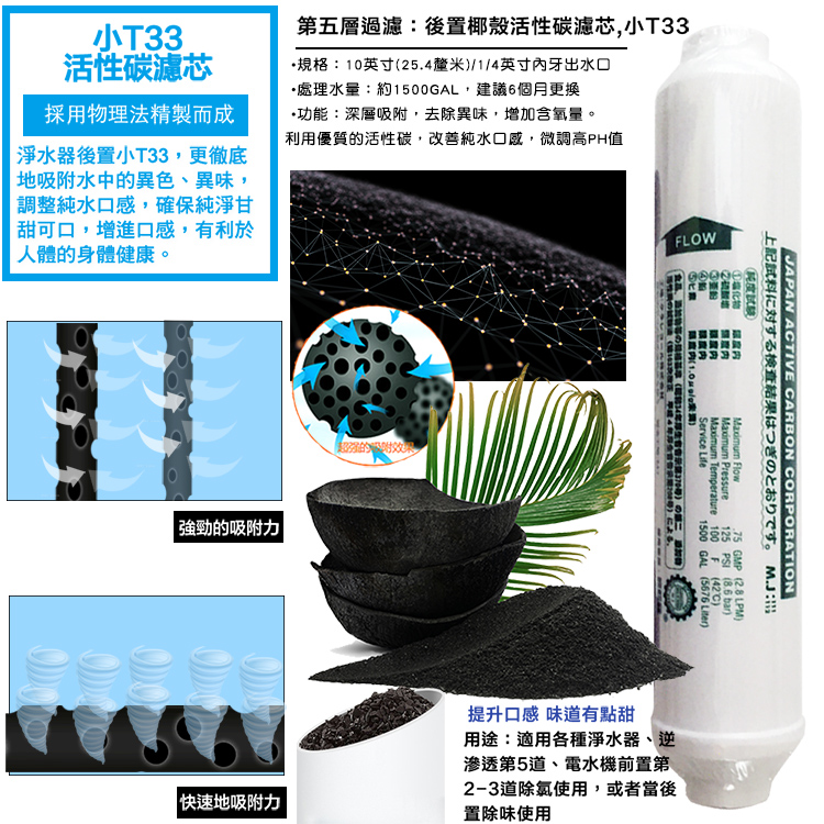 【怡康淨水】後置小T33日本進口椰殼活性炭濾心