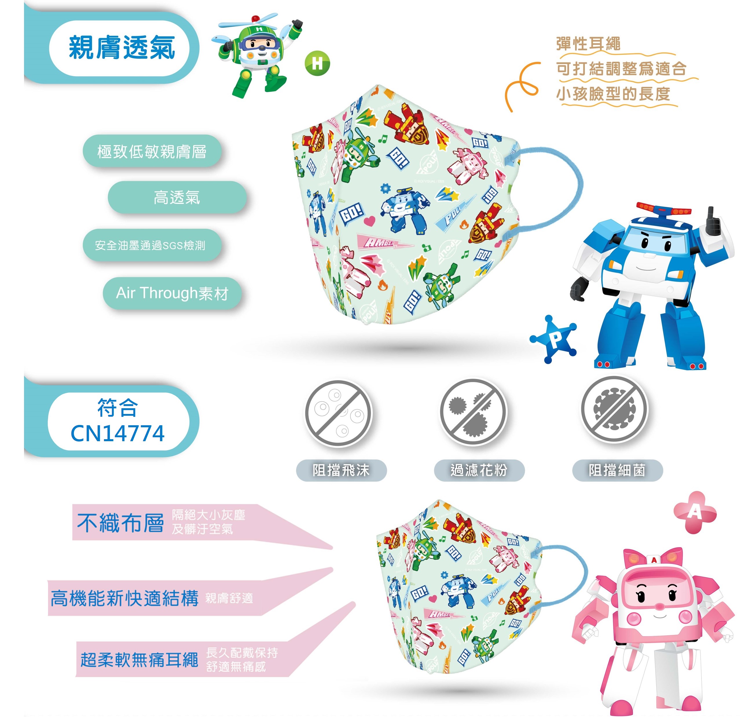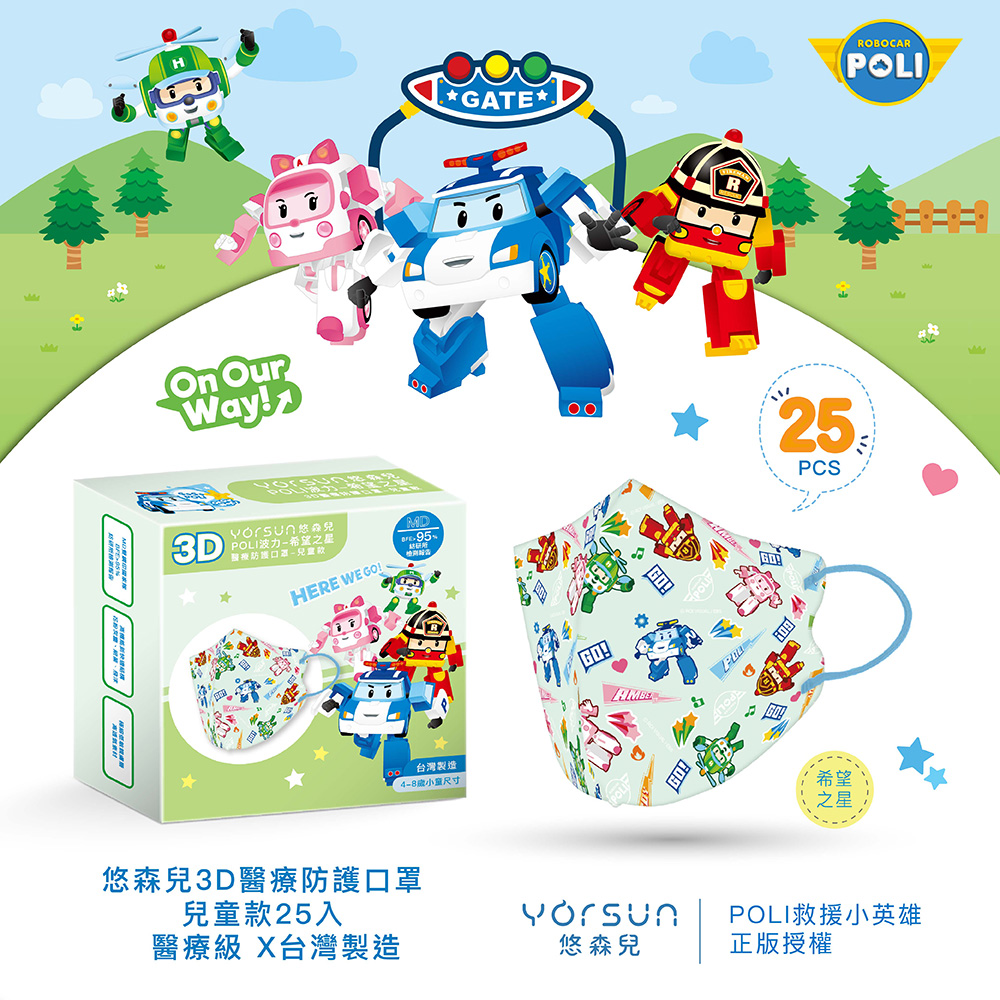 【悠森兒】POLI波力 3D立體兒童醫用口罩25入-希望之星
