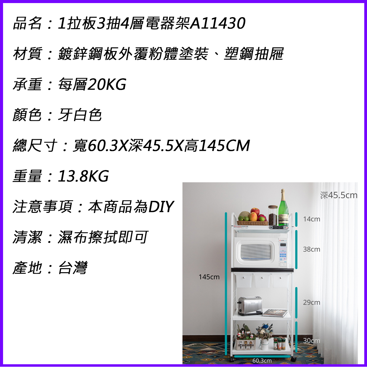 【愛樂美】AI自動斷電1拉板3小抽4層電器置物架11430