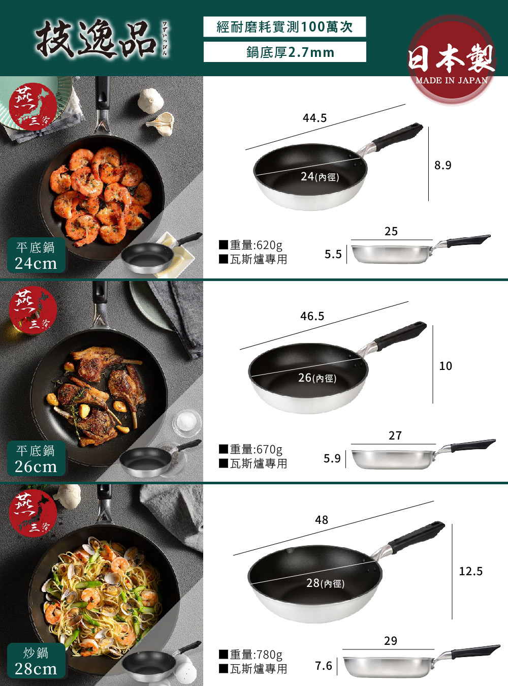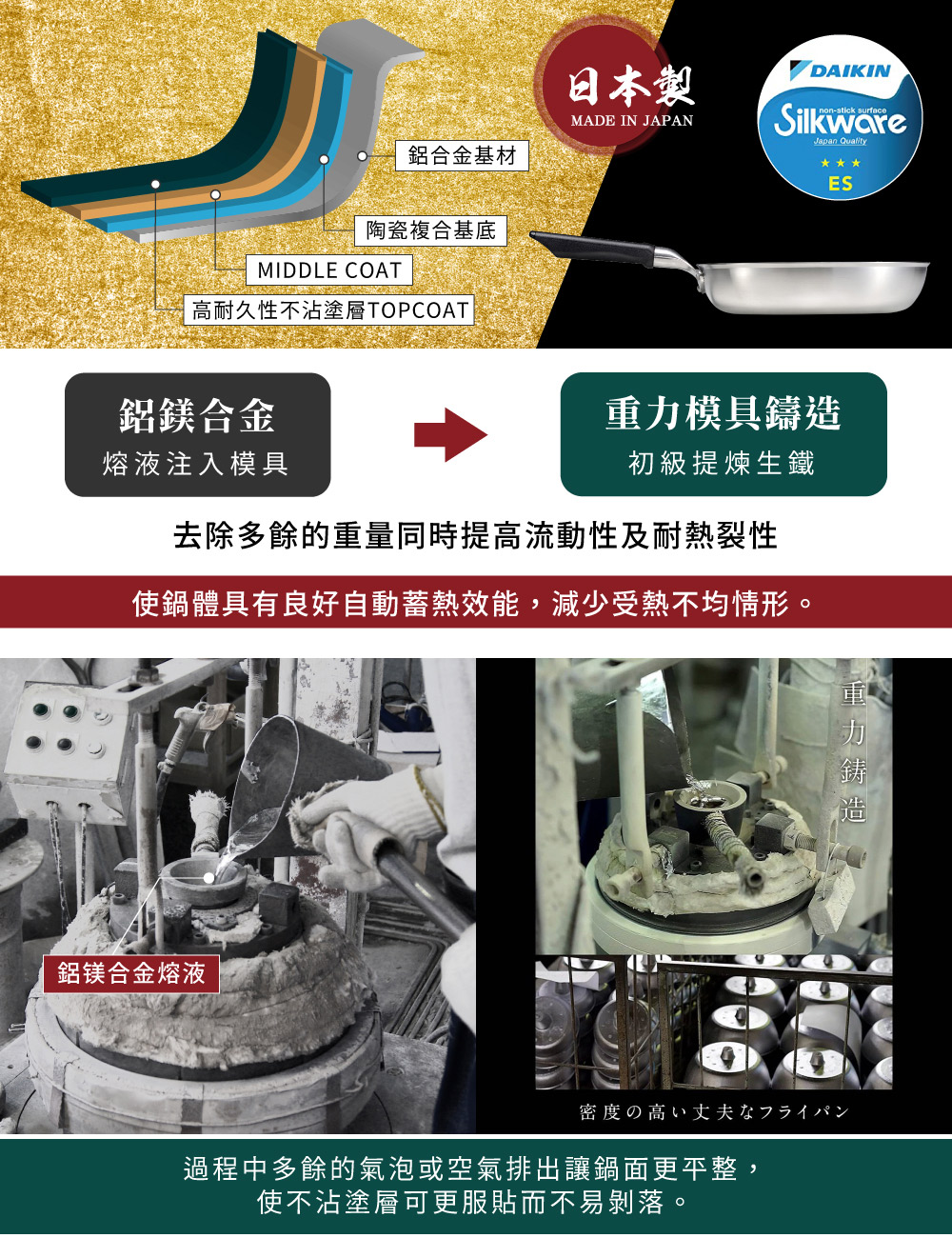【技逸品】日本製不沾鍋炒鍋28cm(大金ES加工/鍋底部厚度2.7mm)