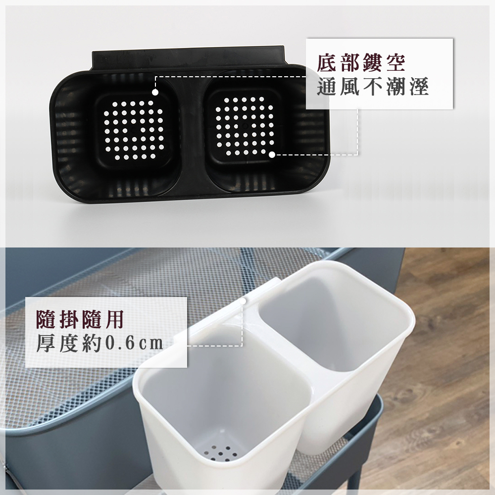 [拜爾家居] 多功能推車掛籃 台灣現貨 雙格掛籃 收納掛籃 桌面收納盒 筆筒 文具收納 置物籃 浴室收納 廚房收納 (免運)
