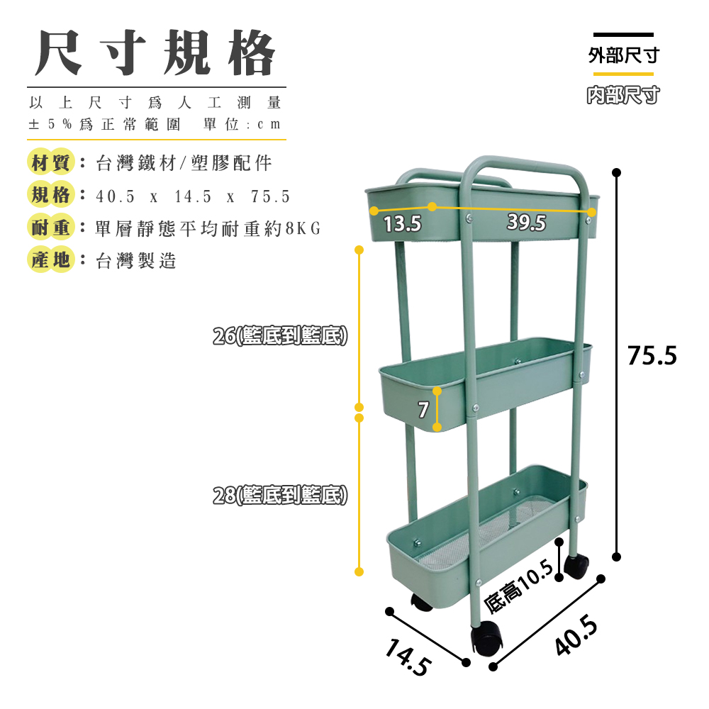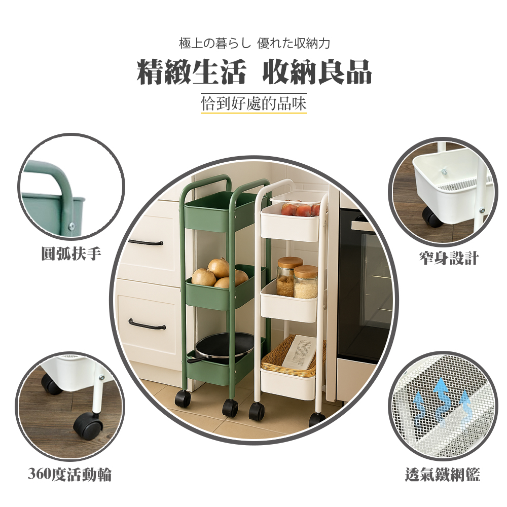 [拜爾家居]推推隙縫三層車 台灣製造 隙縫三層車 置物推車 隙縫收納推車 移動式收納 廚房推車 北歐風推車 小空間救星 居家整理神器(免運)