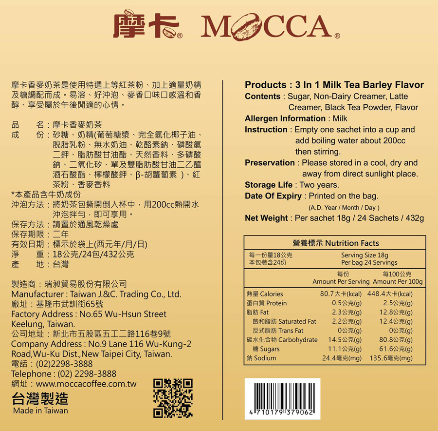 摩卡香麥奶茶 18g x24