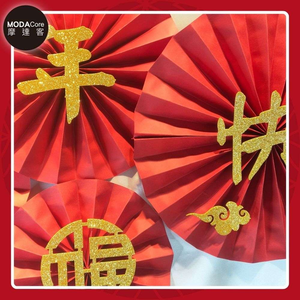 摩達客◉春節開運招財◉新年快樂紙扇花壁飾|窗飾|掛飾(1組6片入)