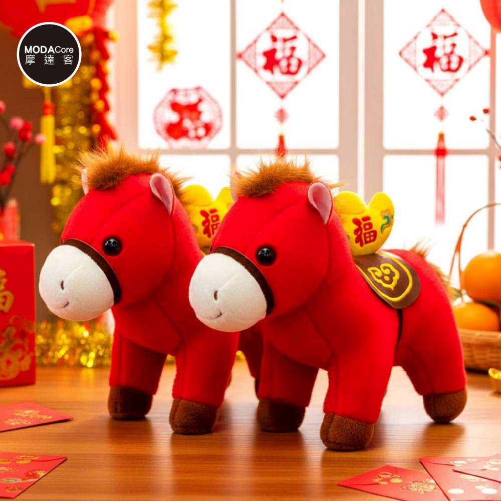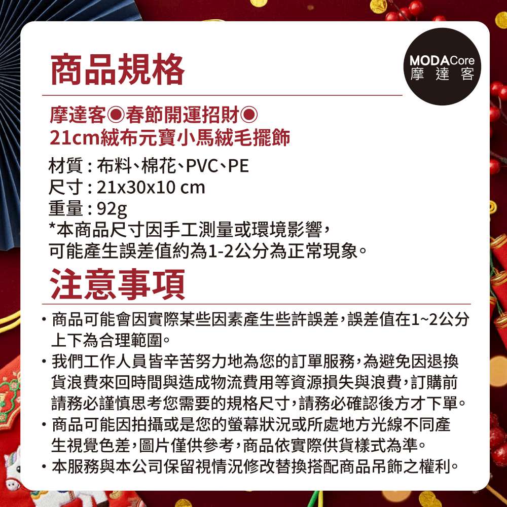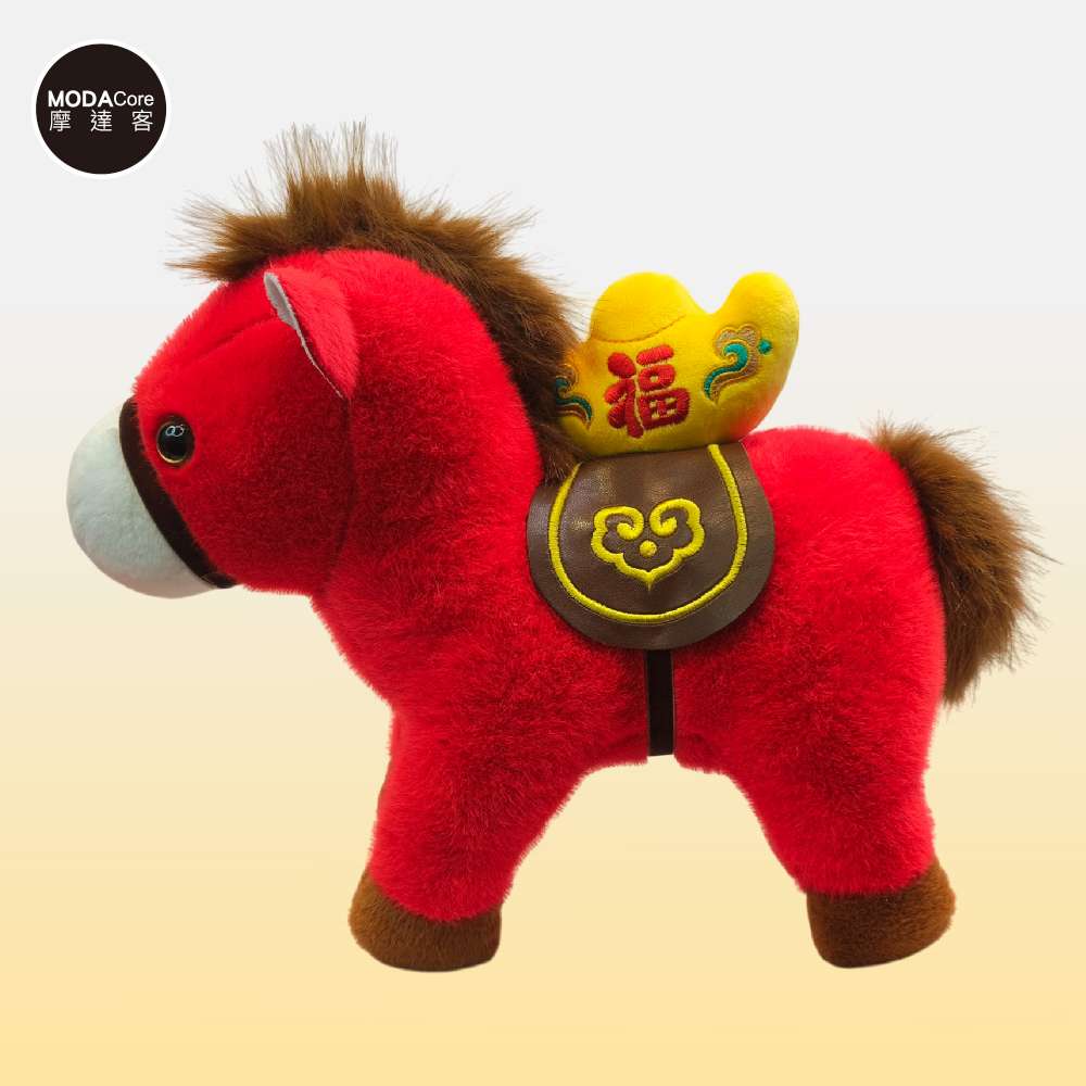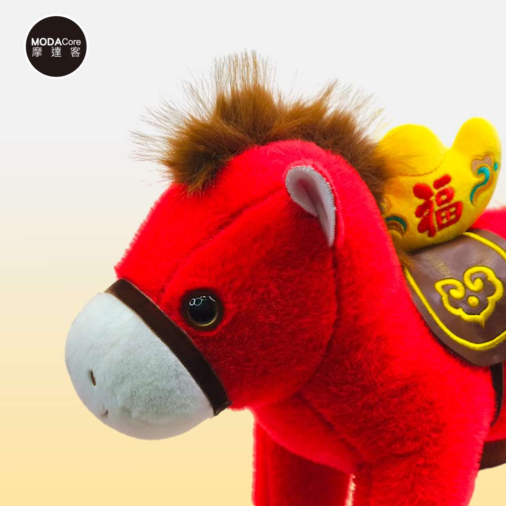 摩達客◉春節開運招財◉21cm絨布元寶小馬絨毛擺飾