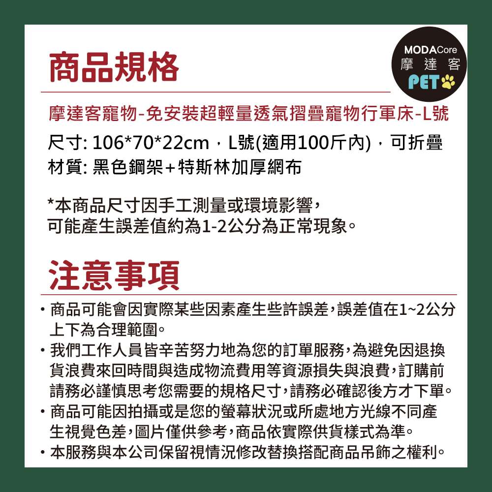 摩達客寵物-免安裝超輕量透氣摺疊寵物行軍床-L號 外銷歐美加厚款飛行床寵物床_不鏽鋼支架