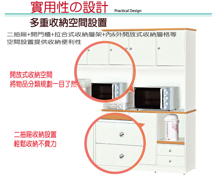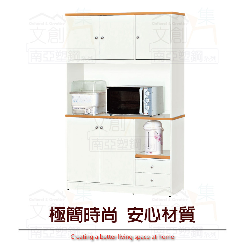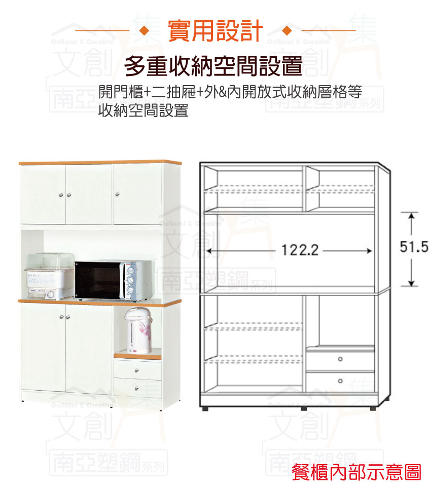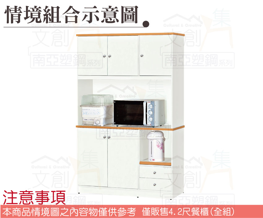 【文創集】波莉 環保4.2尺南亞塑鋼五門二抽高餐櫃/收納櫃組合(客約商品)