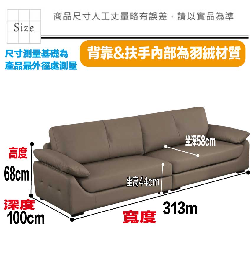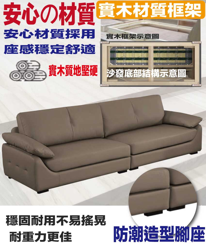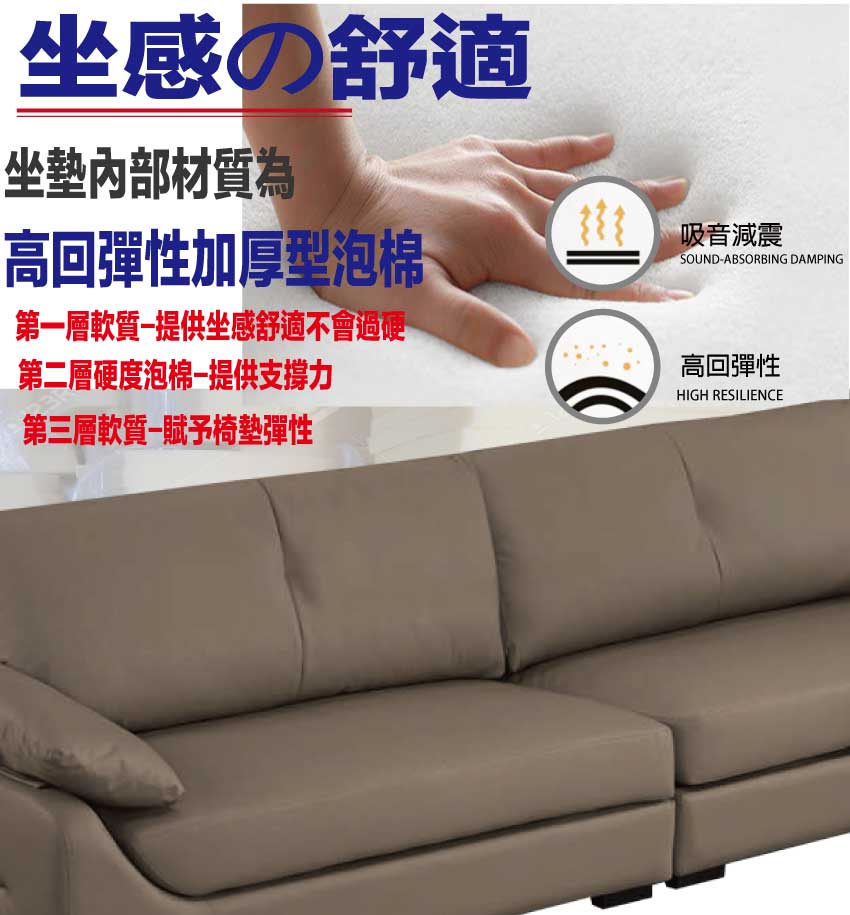 採用內部實木板材框架+防潮造型腳座+透氣柔韌皮革+高回彈力加厚泡棉等安心材質製造
