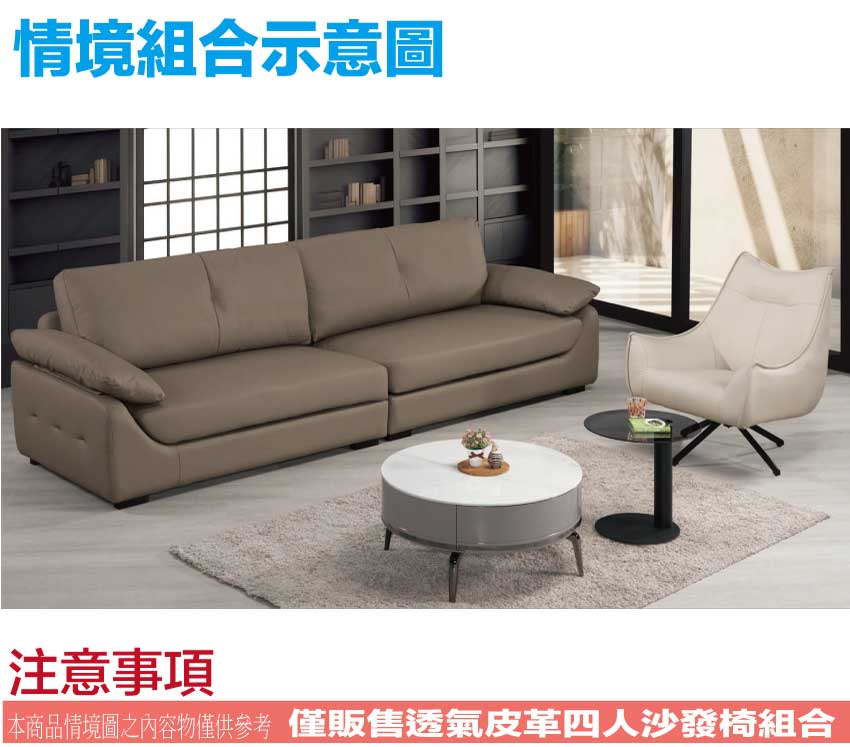【文創集】愛達咖啡色透氣皮革四人座沙發椅 時尚咖啡色系+現代美型外觀+安心材質製造,就是這種頂級質感的設計,能輕鬆地融入各種空間風格,採用內部實木板材框架+防潮造型腳座+透氣柔韌皮革+高回彈力加厚泡棉等安心材質製造,品質安心有保障,現在購買專人送到府服務,免組裝+免運費,讓你省時省力省運費!