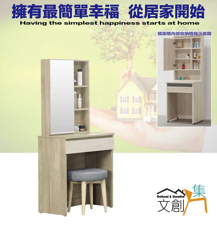 【文創集】瑞歐雙色2尺開合式鏡面組合(含化妝椅) 木紋雙色系+安心材質製造,使用放心+搭配居家更便利,採用防蛀木心板+防潮耐磨底座+五金滑軌結構+強化玻璃鏡面等安心材質製造 ,外層採用防潮耐磨噴漆處理搭配採用開合式鏡面櫃+單抽屜+內&外開放層格等收納空間設計,全由專人配送到家,專業安心服務,替你省下更多時間!