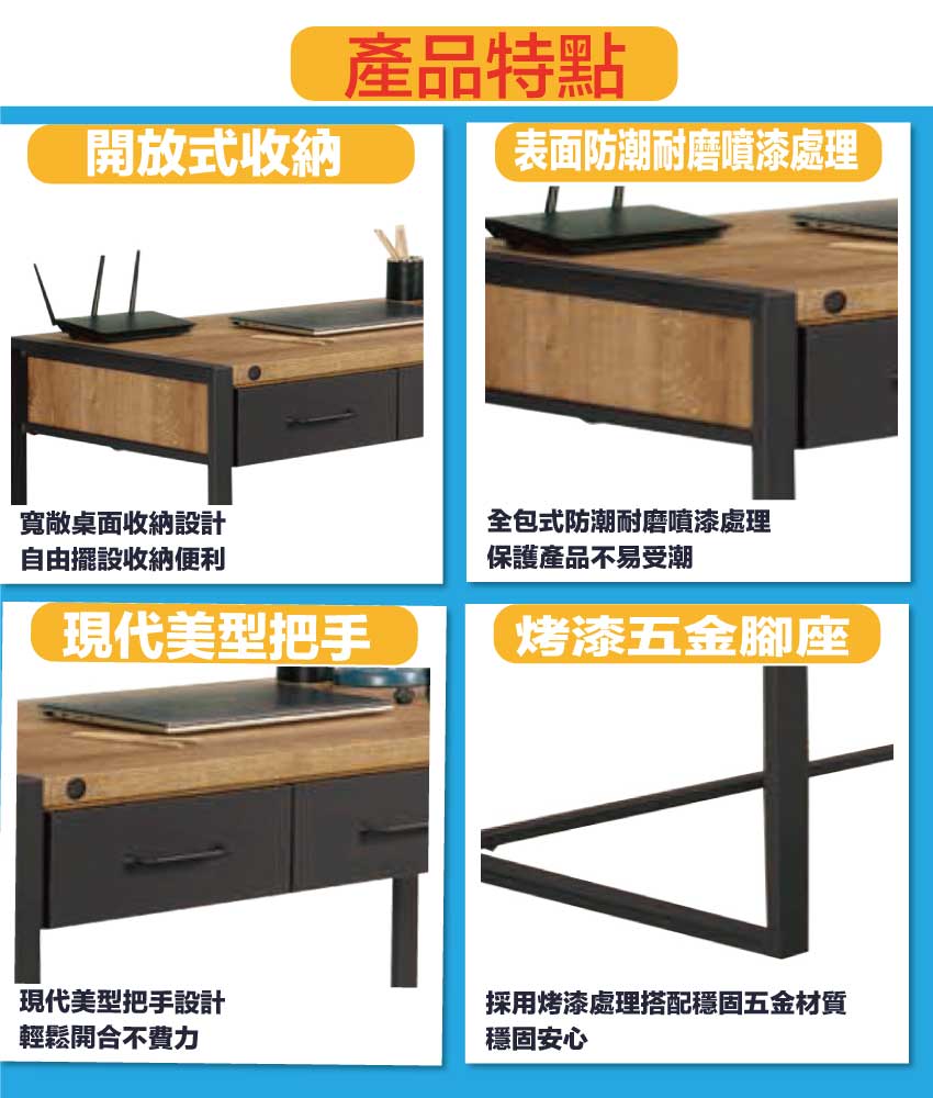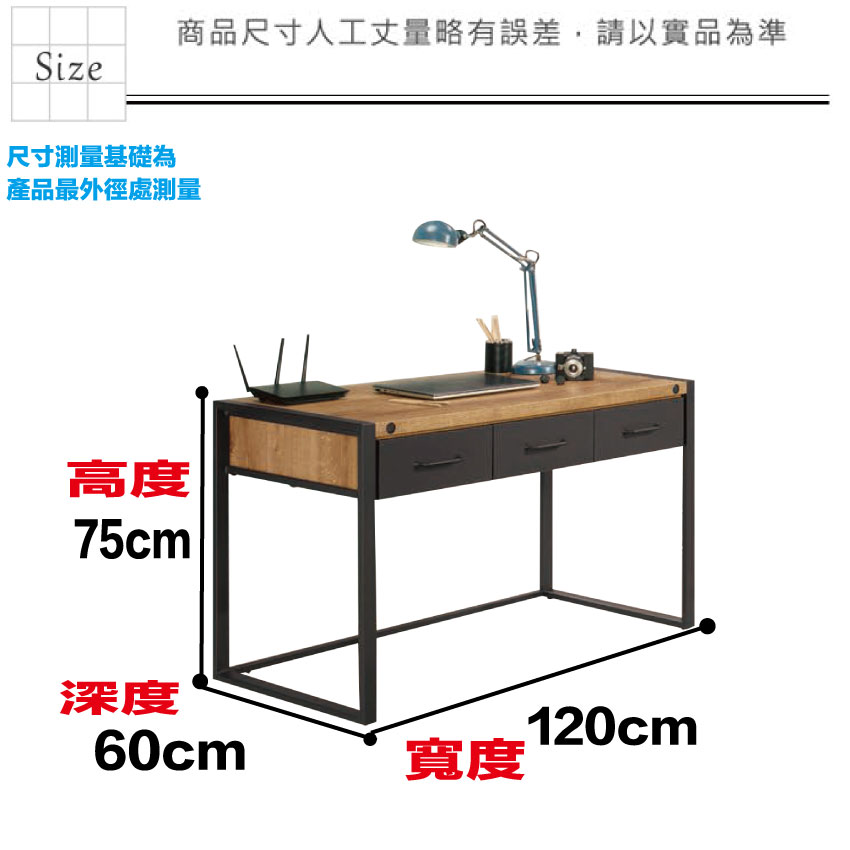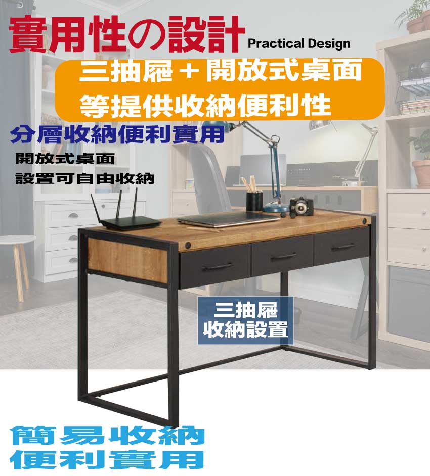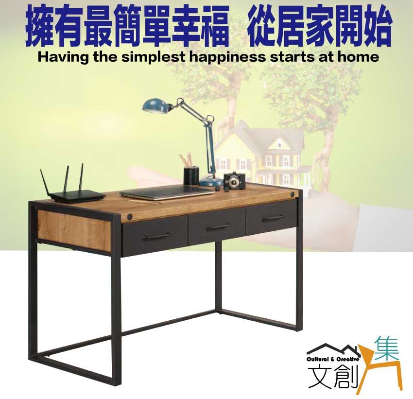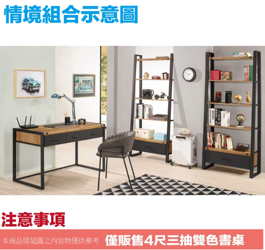 【文創集】華爾雙色4尺三抽鐵腳書桌(客約商品)