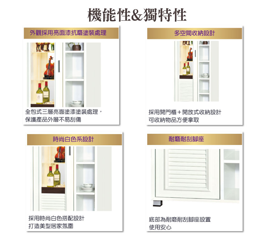 搭配開門櫃+內&外開放式層格收納+LED氛圍燈設置等便利設計