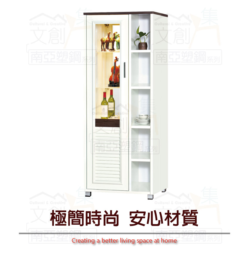 【文創集】巴莉 環保2.3尺南亞塑鋼單門半開放高展示櫃/收納櫃 產品採用第一品牌-台製南亞塑鋼舒美板+玻璃門片+5mm玻璃隔板材質,整體材質採用防水+防燃+無甲醛安心塑鋼材質製造 ,搭配開門櫃+內&外開放式層格收納+LED氛圍燈設置等便利設計,防止受潮,增加支撐力,堅固不會塌陷,全由專人配送到家,專業安心服務,替你省下更多時間!