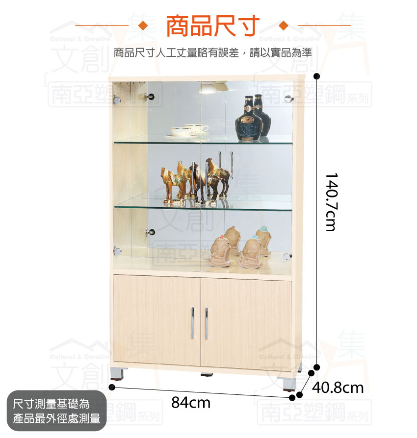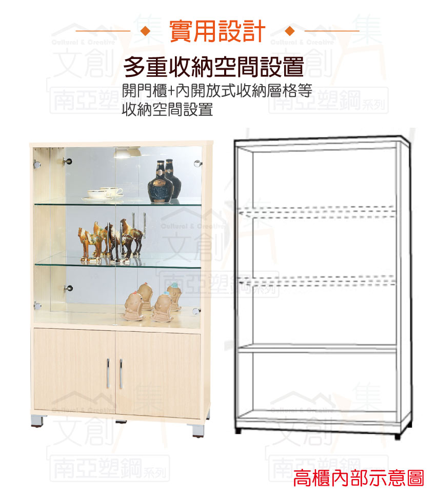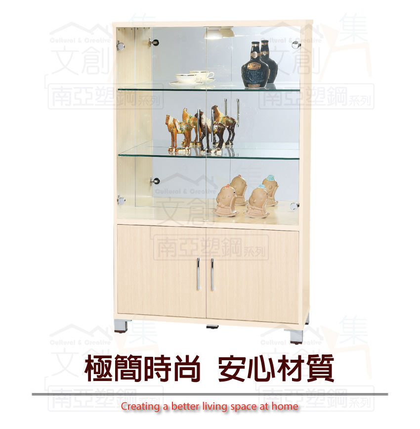 【文創集】瓦多 環保2.8尺南亞塑鋼玻璃四門高展示櫃/收納櫃 產品採用第一品牌-台製南亞塑鋼舒美板+玻璃門片+8mm玻璃隔板材質,整體材質採用防水+防燃+無甲醛安心塑鋼材質製造 ,搭配開門櫃+內開放式層格收納+LED氛圍燈設置等便利設計,防止受潮,增加支撐力,堅固不會塌陷,全由專人配送到家,專業安心服務,替你省下更多時間!