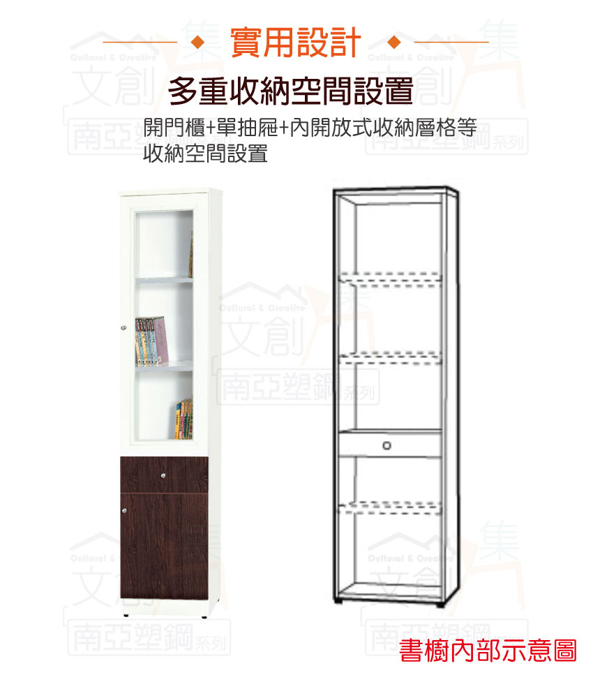 【文創集】巴莉 環保1.4尺南亞塑鋼二門單抽書櫃/收納櫃 產品採用第一品牌-台製南亞塑鋼舒美板+五金滑軌結構等材質,整體材質採用防水+防燃+無甲醛安心塑鋼材質製造 ,搭配開門櫃+單抽屜+內開放式收納等便利設計,防止受潮,增加支撐力,堅固不會塌陷,全由專人配送到家,專業安心服務,替你省下更多時間!
