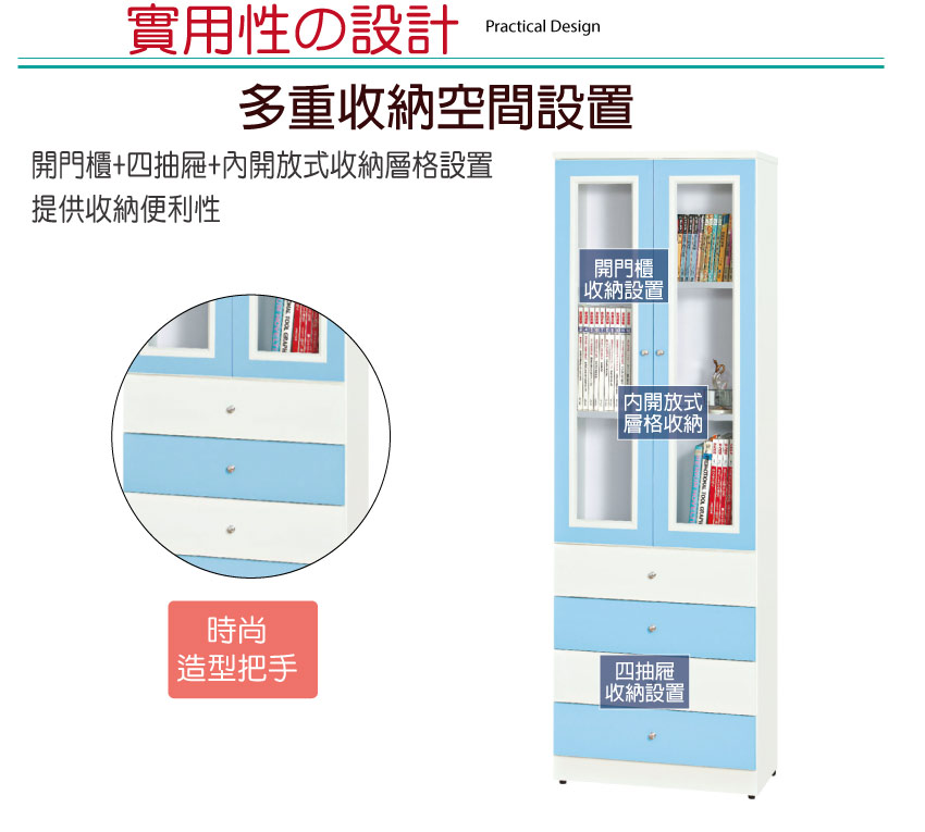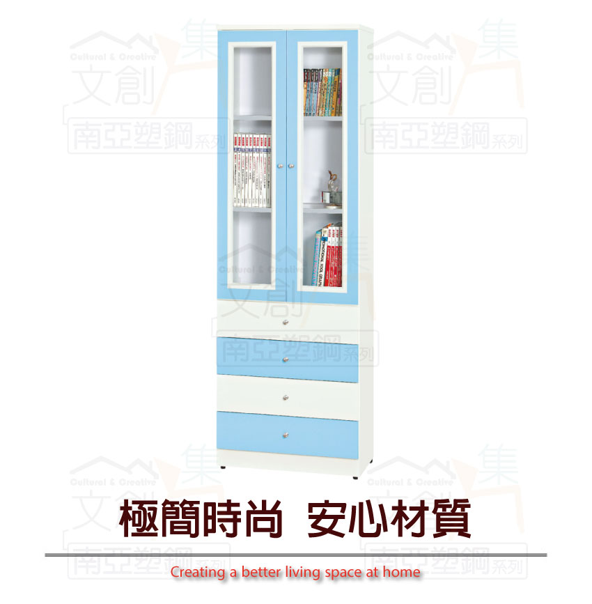 【文創集】巴莉 環保2.1尺南亞塑鋼二門四抽書櫃/收納櫃(客約商品)